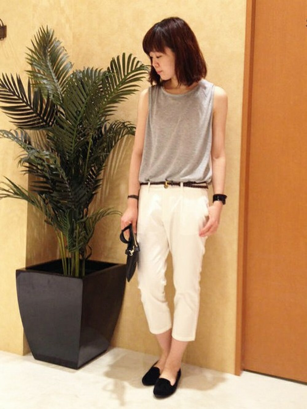 モノトーンでちょっぴりかっこよく上品にしてみました。 小物で差した黒がアクセントに。 上品なオペラパンプスが今の気分。