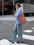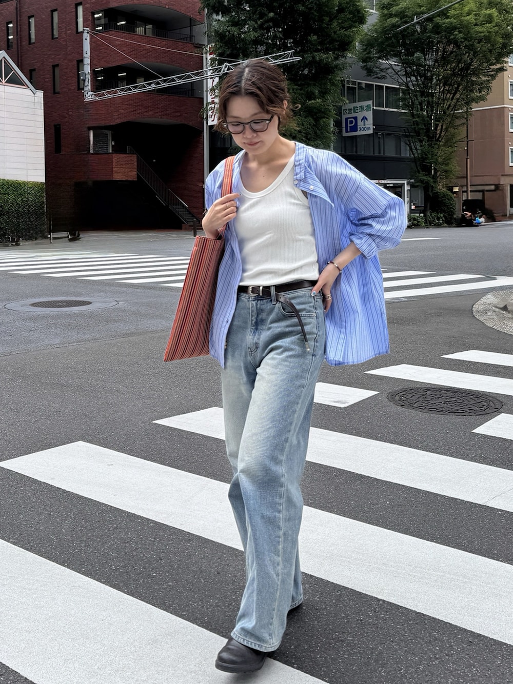 さわやかにデニム合わせで。 差し色にオレンジ🍊トート