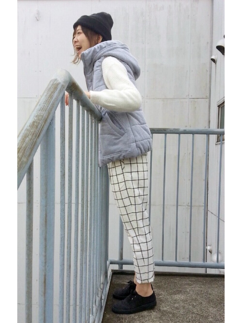 おかだ(LBC HEAD OFFICE)のダウンベスト「カットソー中綿ベスト」を使ったコーディネート