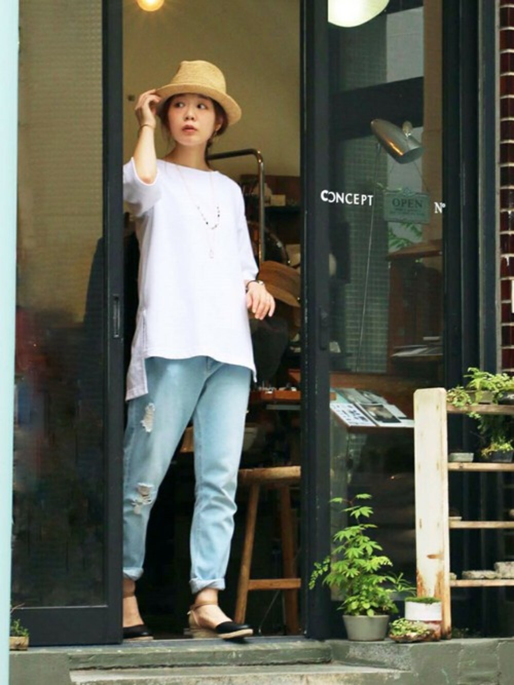 おかだ(LBC HEAD OFFICE)のTシャツ/カットソー「ビッグTチュニック」を使ったコーディネート