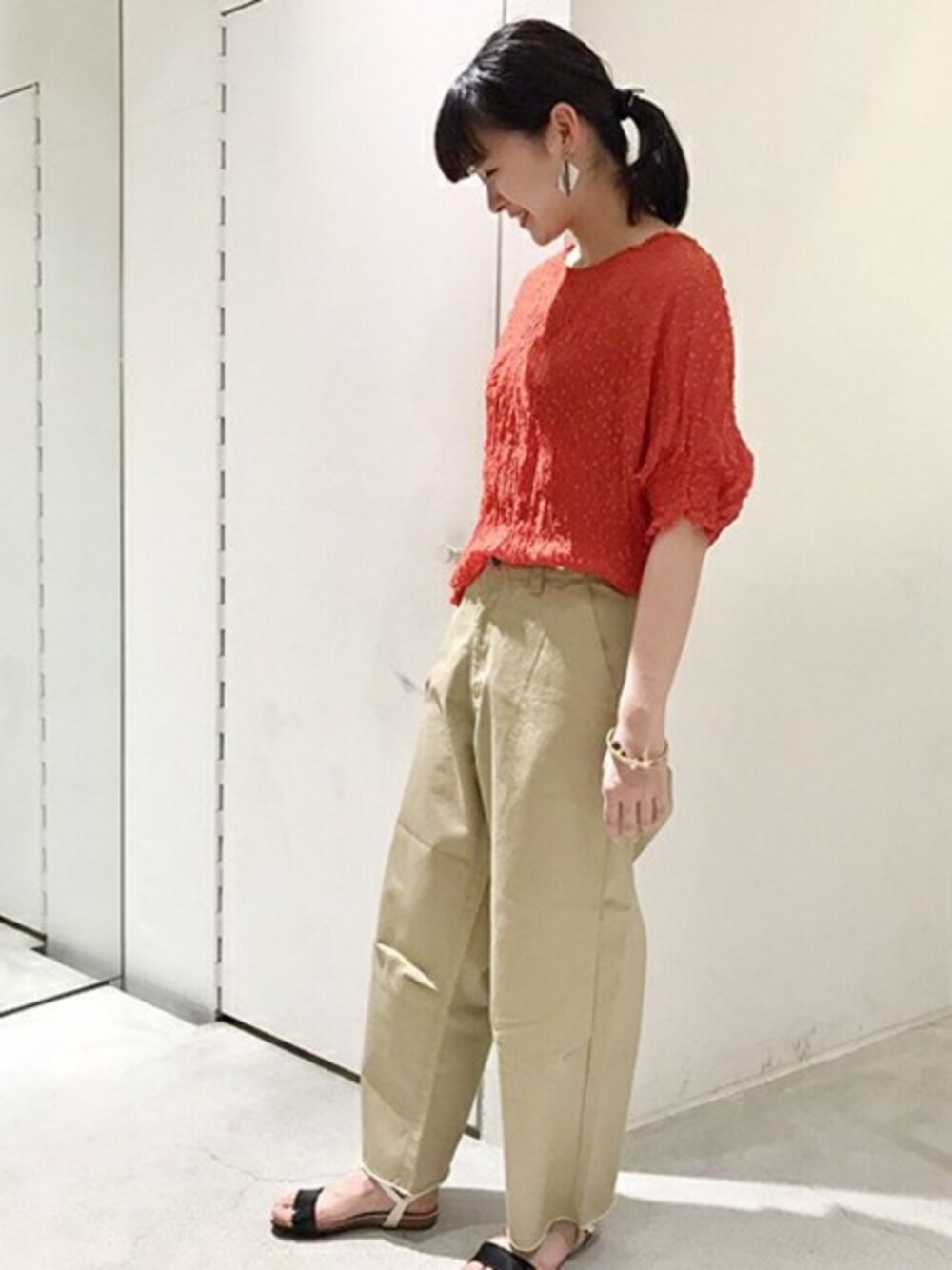 袖のシャーリングがポイント🍎 夏らしく透け感もあり デニムと合わせて カジュアルに着るのも◎