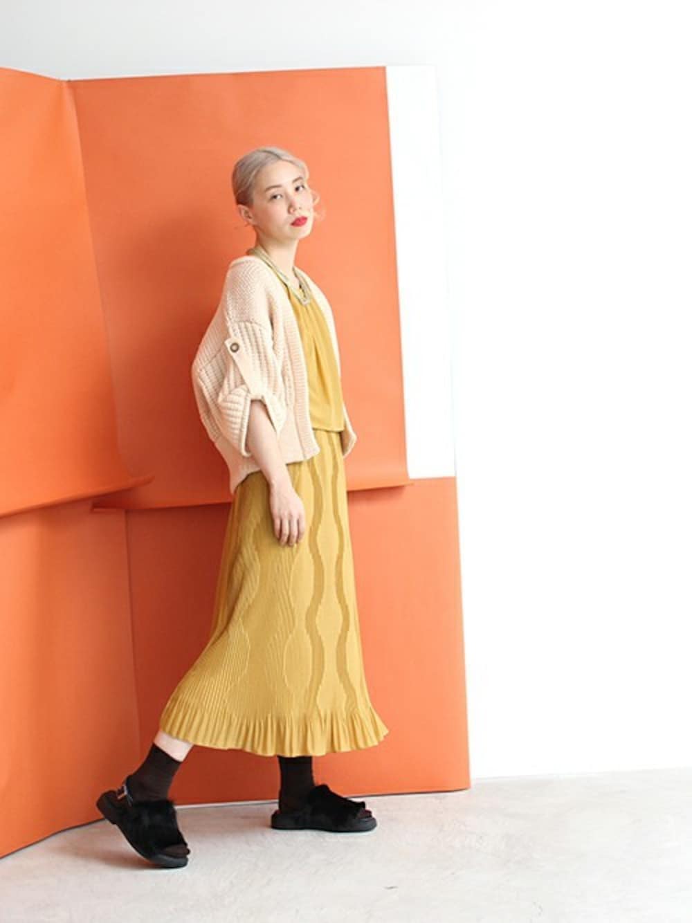 きれいめのワンピースに、 もこもこサンダルや、ほっこりニットを+ カジュアルスタイルもおすすめです○