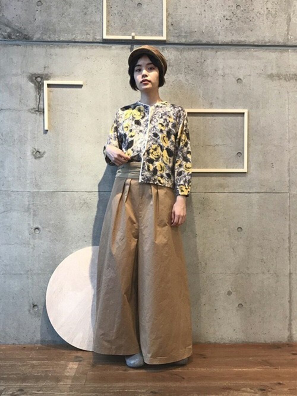 note et silence.のカーディガン/ボレロ「ラム/アンゴラ 50’sフラワープリント クルー長袖カーディガン」を使ったコーディネート