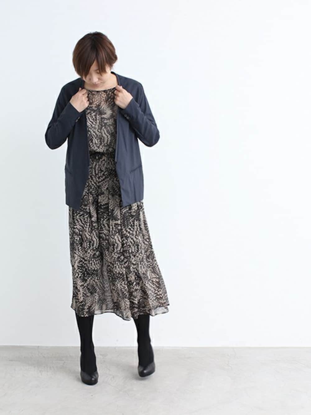 note et silence.のドレス「【 web限定商品 】オジヤ楊柳マーブルプリント フレンチスリーブ ワンピース」を使ったコーディネート