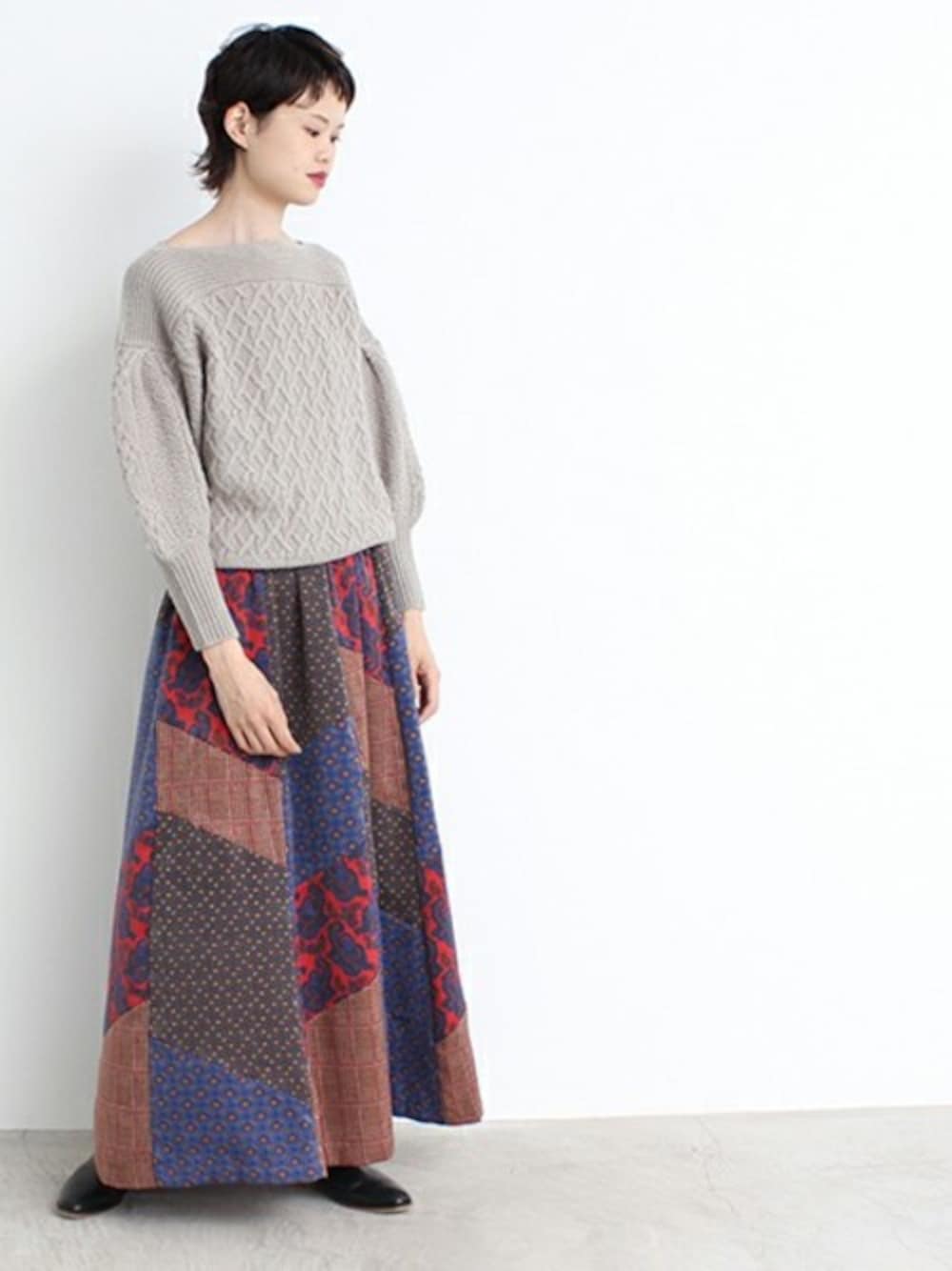 note et silence.のスカート「【 web限定色 】ブライトスエード プリントパッチワーク パッチワークマキシSK」を使ったコーディネート
