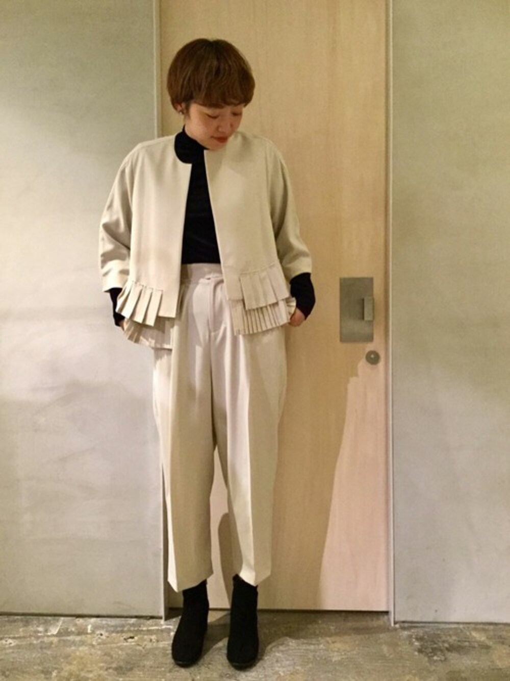 Ebonyivory¥21,780Ebonyivory¥15,180nitca¥7,590この画像から似たアイテムを検索できます1,50722お気に入り (5)220note et silence.さんへのコメントNO COMMENTコメントはスマートフォン用アプリからご利用できます着用アイテム¥21,780EbonyivoryEbonyivoryテーラードジャケット (ホワイト系)テーラードジャケットサイズ:FREE着用コーデ:5件探すZOZOTOWNで探す¥15,180EbonyivoryEbonyivoryその他パンツ (ホワイト系)その他パンツサイズ:FREE着用コーデ:4件探すZOZOTOWNで探す¥7,590nitcanitcaTシャツ/カットソー (ブルー系)Tシャツ/カットソーサイズ:FREE着用コーデ:3件探すZOZOTOWNで探すnote et silence.のテーラードジャケット「ポリエステルツイル プリーツコラージュジャケット」を使ったコーディネートコメントを表示2019.12.24着用ブランドEbonyivorynitcaタグ#セットアップ#ブーツ#シンプル#ノーカラー#モノトーン#ワイドパンツ#オケージョン#プリーツ#センタープレスモデル情報女性・165cm似ているアイテムEbonyivory × テーラードジャケットEbonyivory × その他パンツnitca × Tシャツ/カットソーnote et silence.@noteatelier / 160cm / WOMEN0コーディネート0フォロワー注目のコーディネートアプリでもっと見るもっと見る