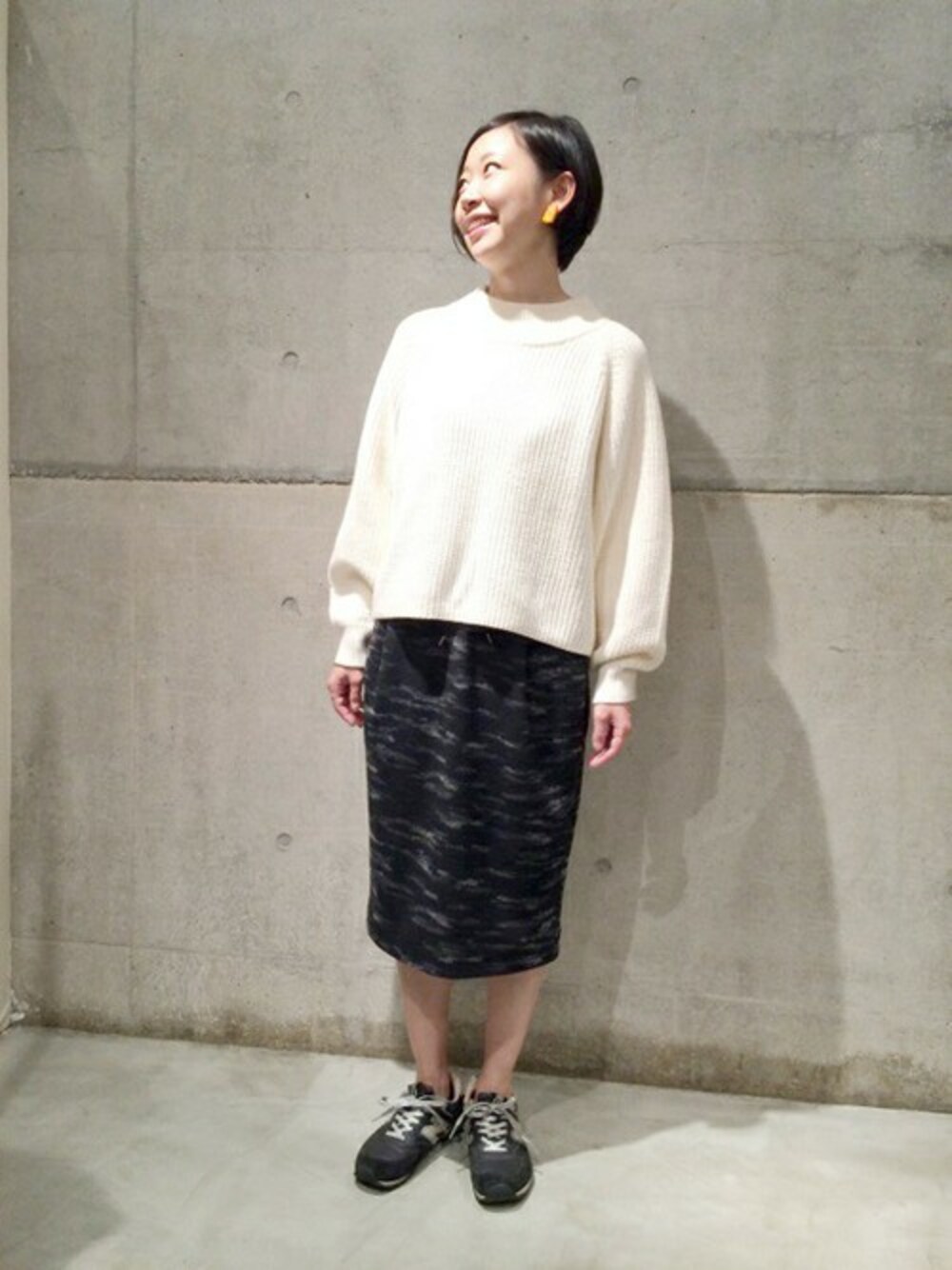 ふわっと、なトップスには、しゅっとする、ボトムで。
