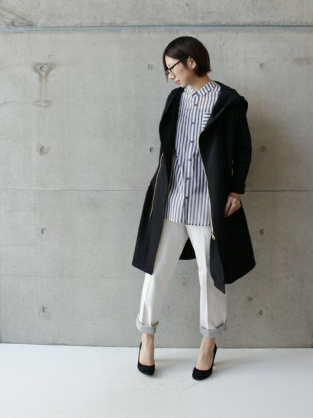 フードアウター×デニム。 モノトーンで、大人な着こなし。