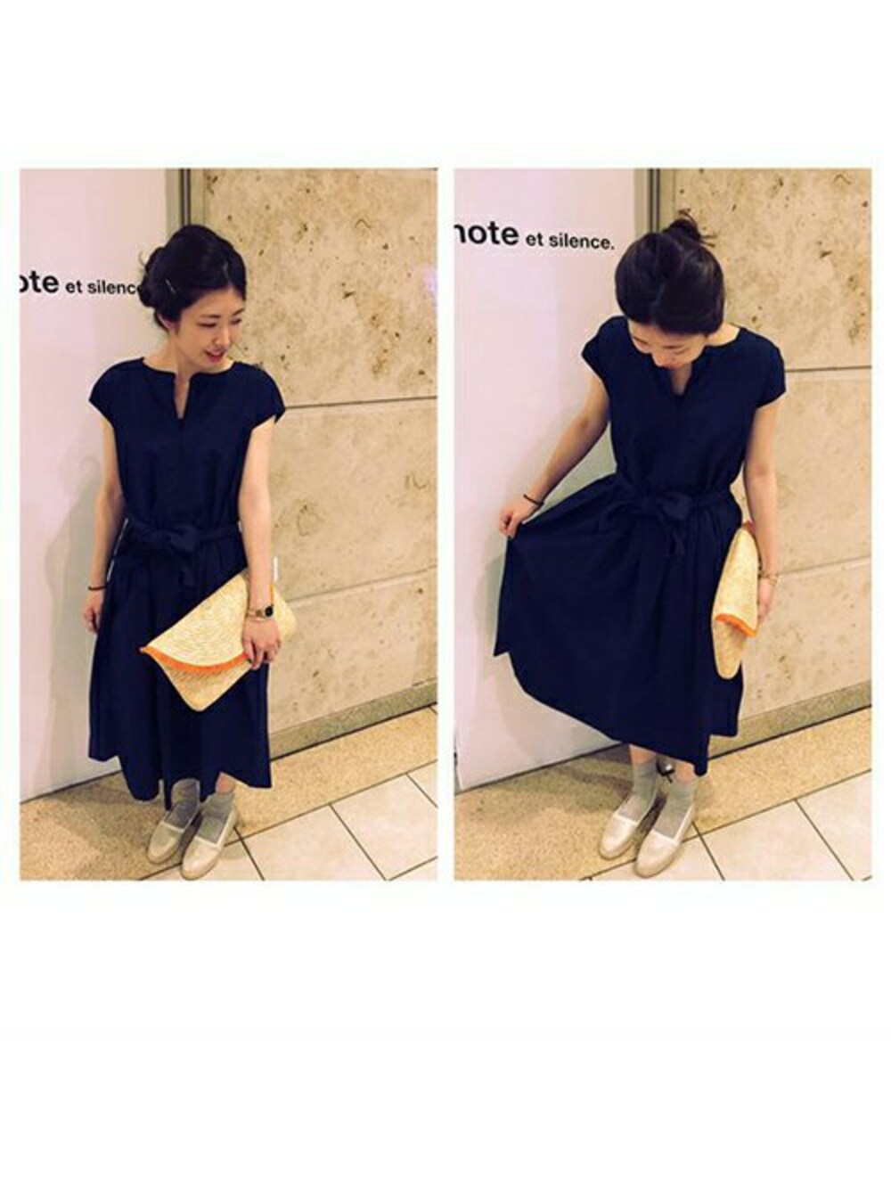 note et silence.のワンピース「C/Liタイプライター アッソルベンテ ギャザー結びOP」を使ったコーディネート