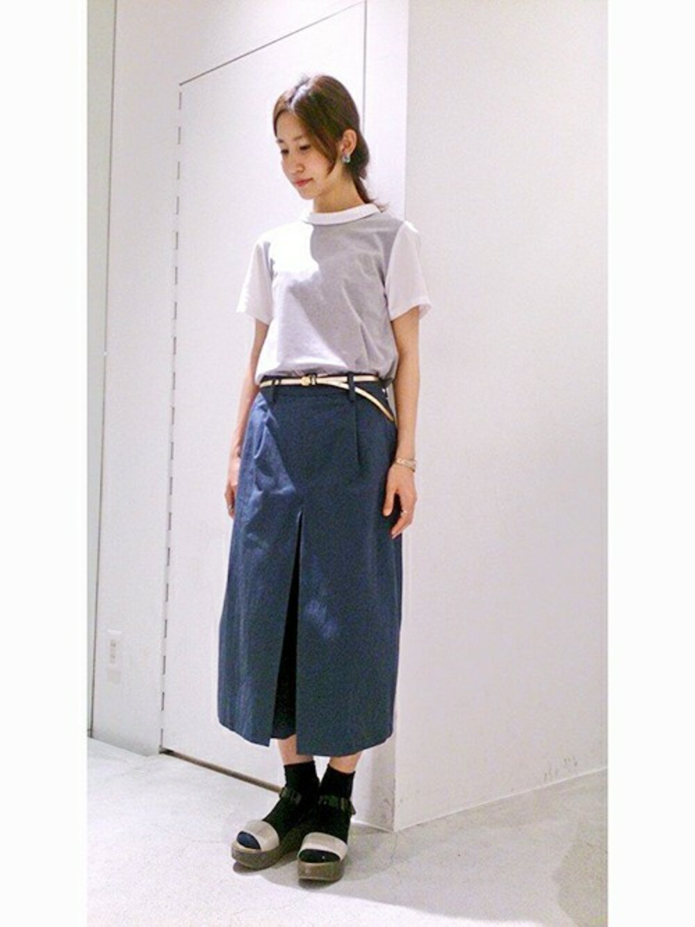 note et silence.のシャツ/ブラウス「C/Peライトカルゼ プリーツ衿 半袖BL」を使ったコーディネート