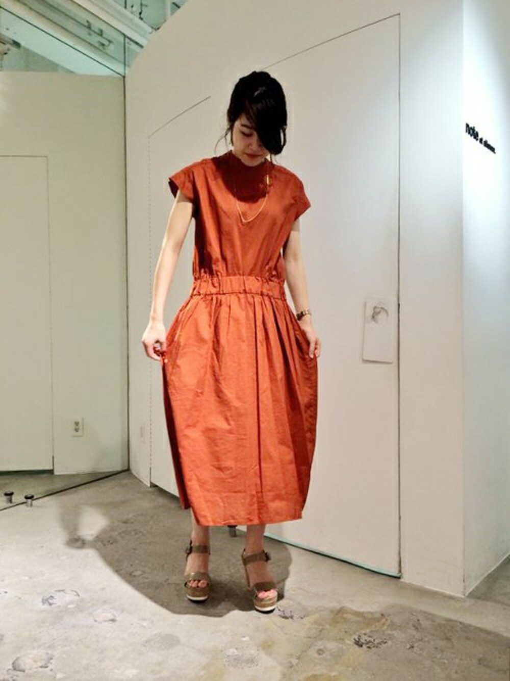 note et silence.のワンピース「ローンリネンシャイニー ロングギャザーOP」を使ったコーディネート