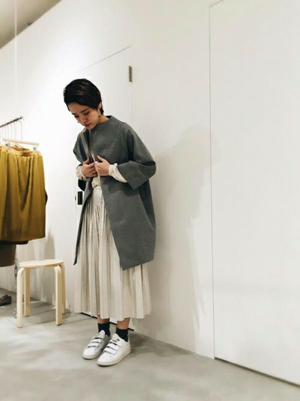 note et silence.のスカート「ハクプリント プリーツロングSK」を使ったコーディネート