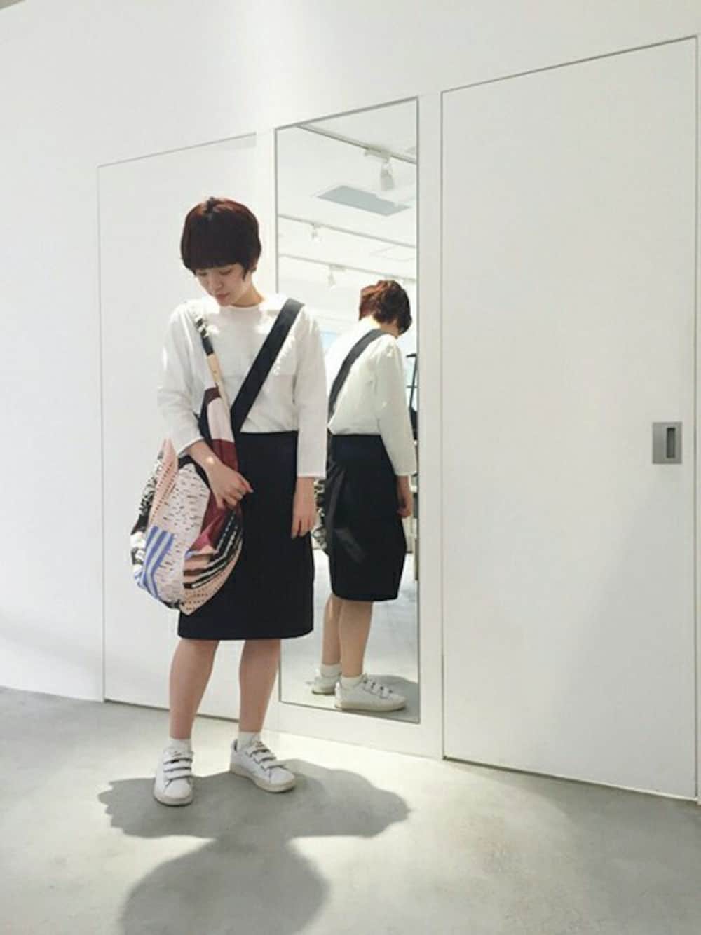 インパクトのあるバッグと caphのななめ吊りスカートは 相性抜群です◯
