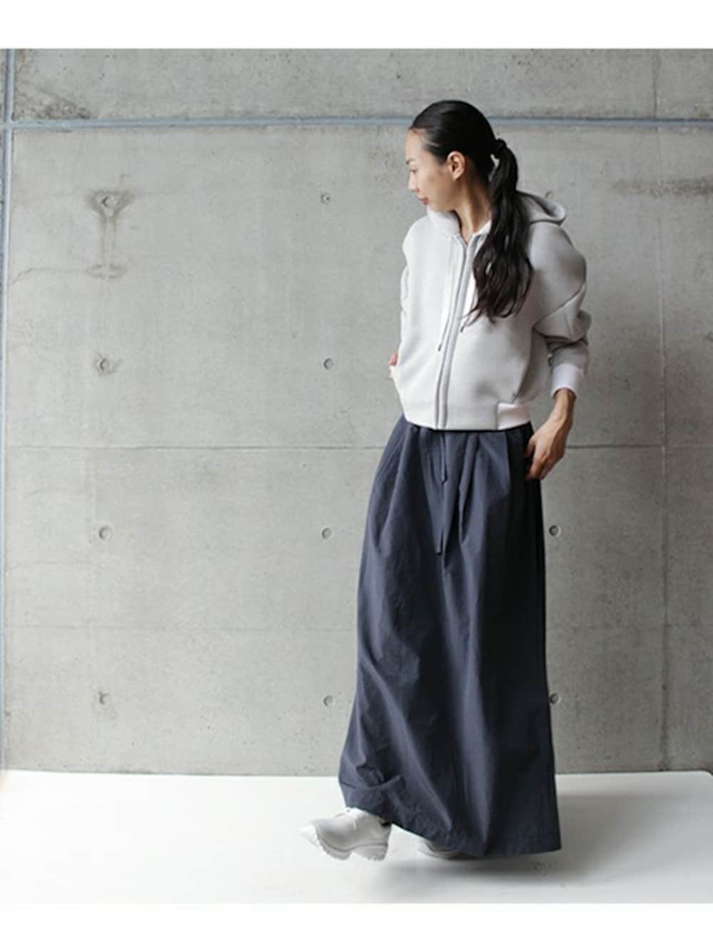 note et silence.のブルゾン「80/ コットン×メッシュ ボンディング チビフードBZ」を使ったコーディネート