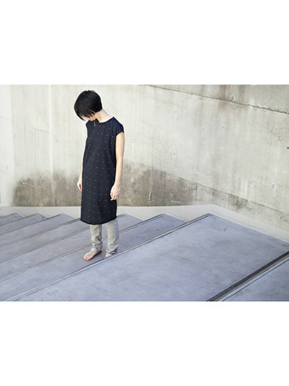 ブラック系のワンピースを着用したレディースの春コーディネートの1枚目の写真