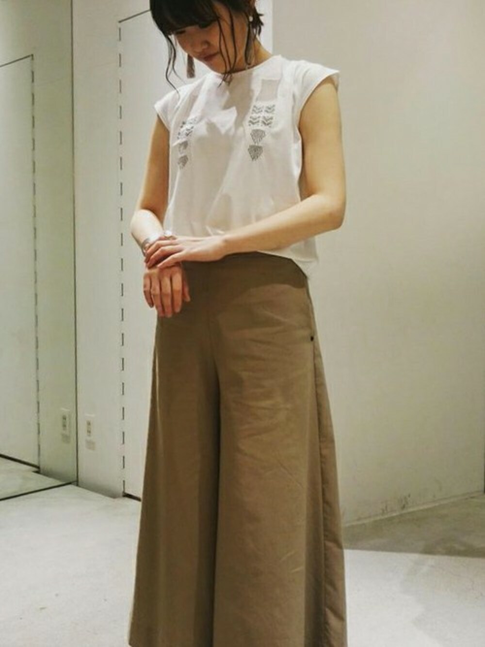 note et silence.のTシャツ/カットソー「ハイゲージ天竺 トライバル刺しゅう ゆるPO」を使ったコーディネート