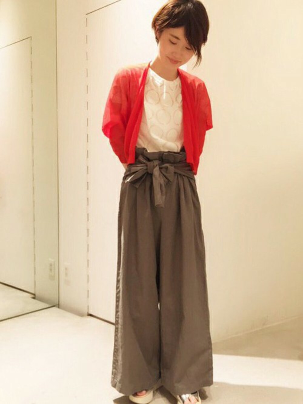 ワイドパンツと 羽織りのあわせ。 (丈が絶妙)