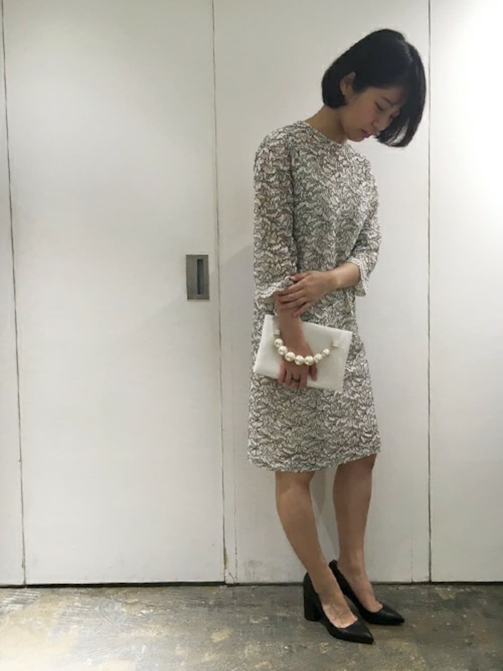 note et silence.のワンピース「2トーン コードレース スリーブOP」を使ったコーディネート