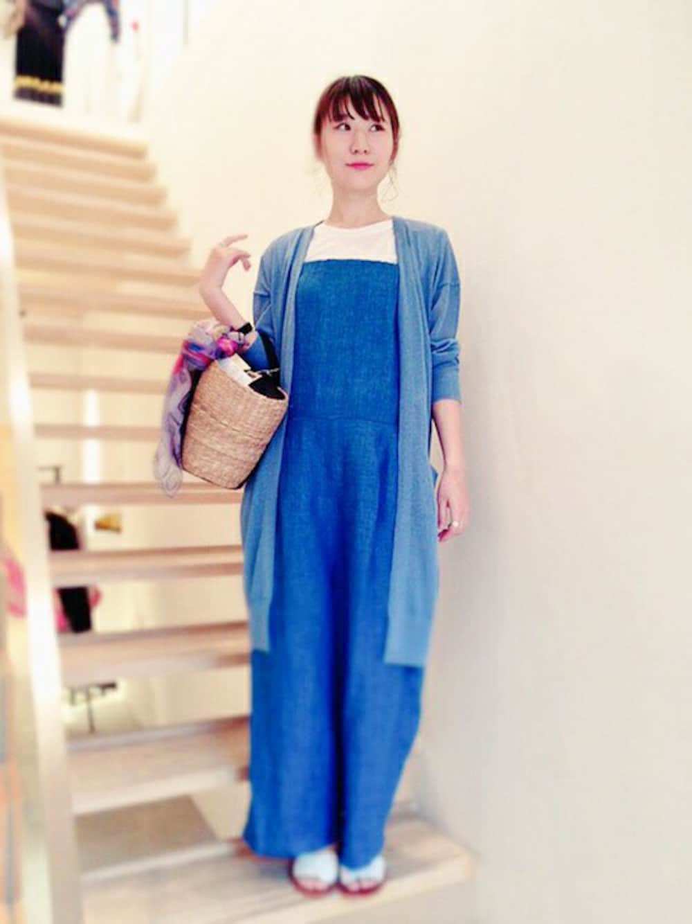 日差しに映える青で 楽ちんなのに可愛いコーデで 友達とお買い物に行きたいです。