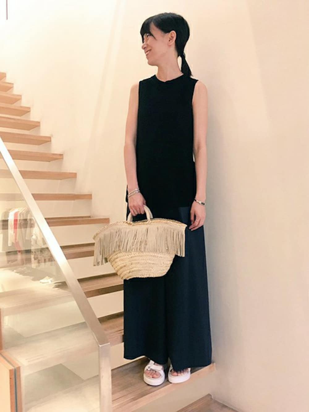 note et silence.のベスト「STRAWYARN GIM加工 ベスト」を使ったコーディネート
