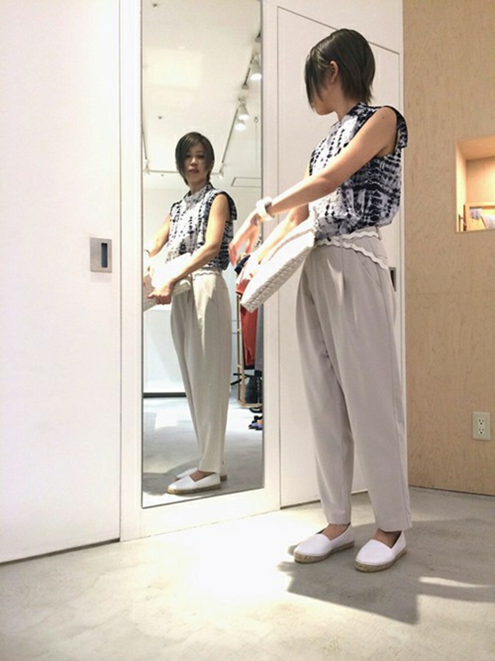 表情のある柄のブラウスを主役に ◯