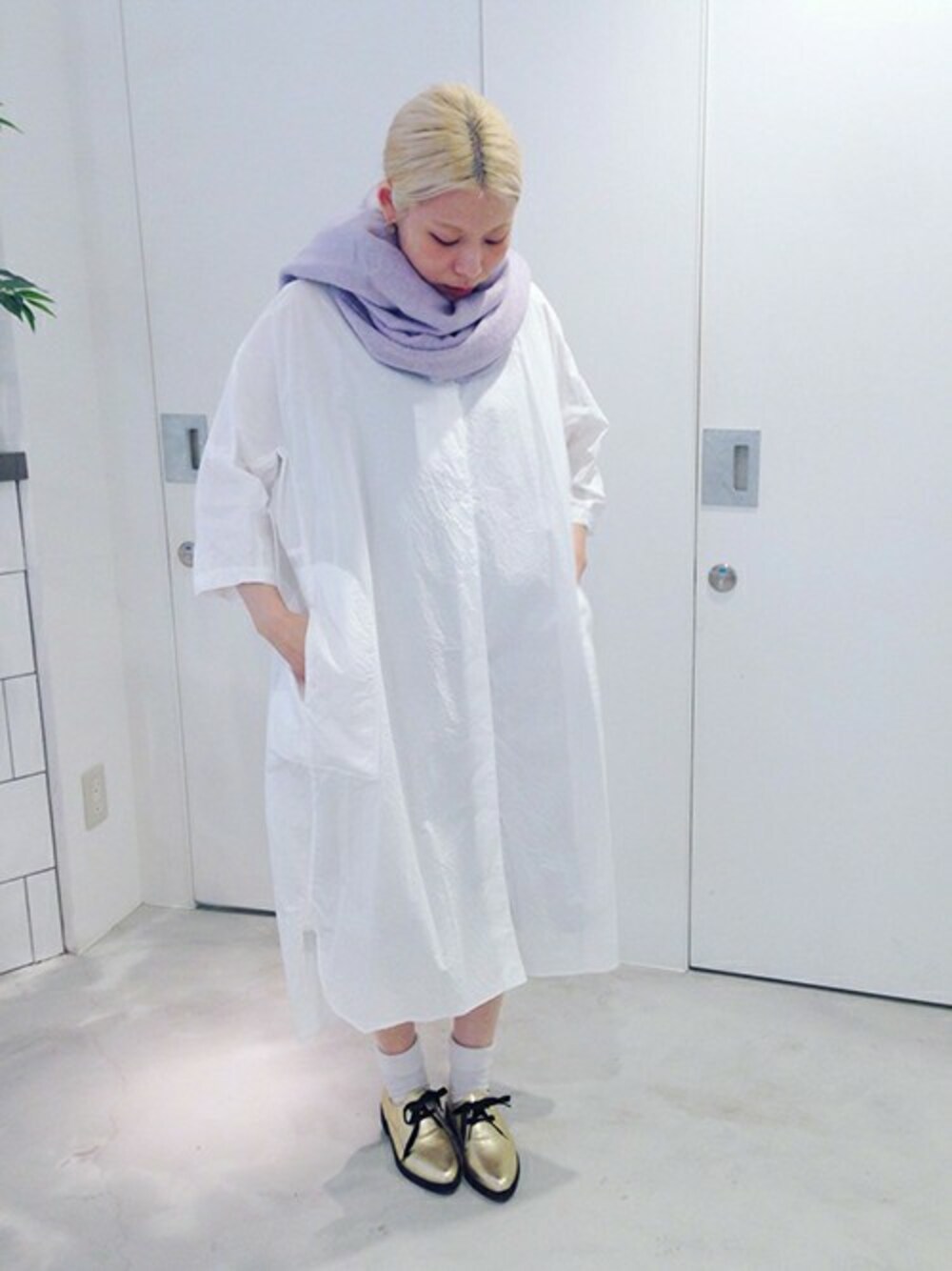 note et silence.のシャツワンピース「タイプライター開衿シャツOP」を使ったコーディネート