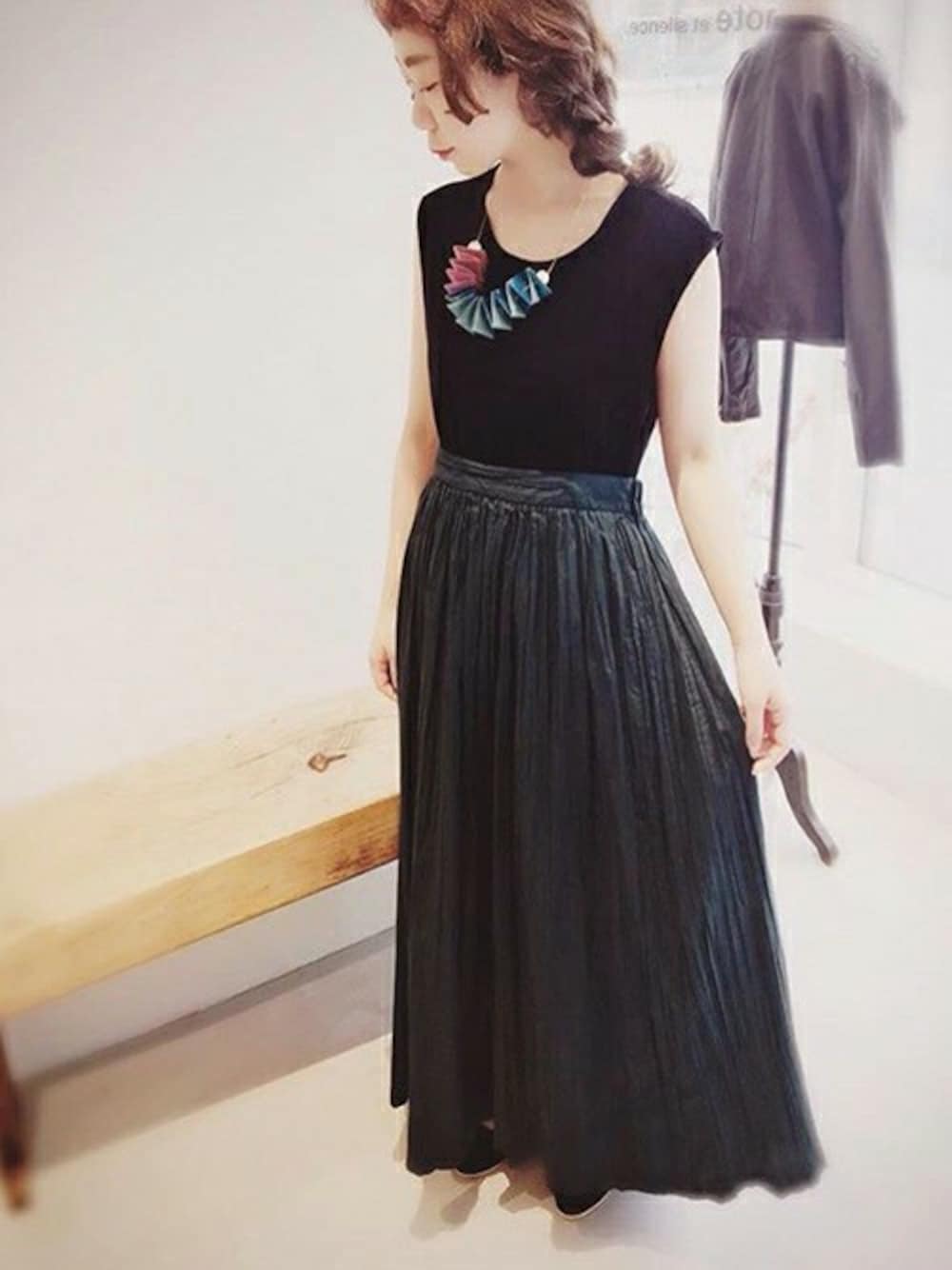note et silence.のシャツ/ブラウス「プレミアムベロア ノースリBL」を使ったコーディネート