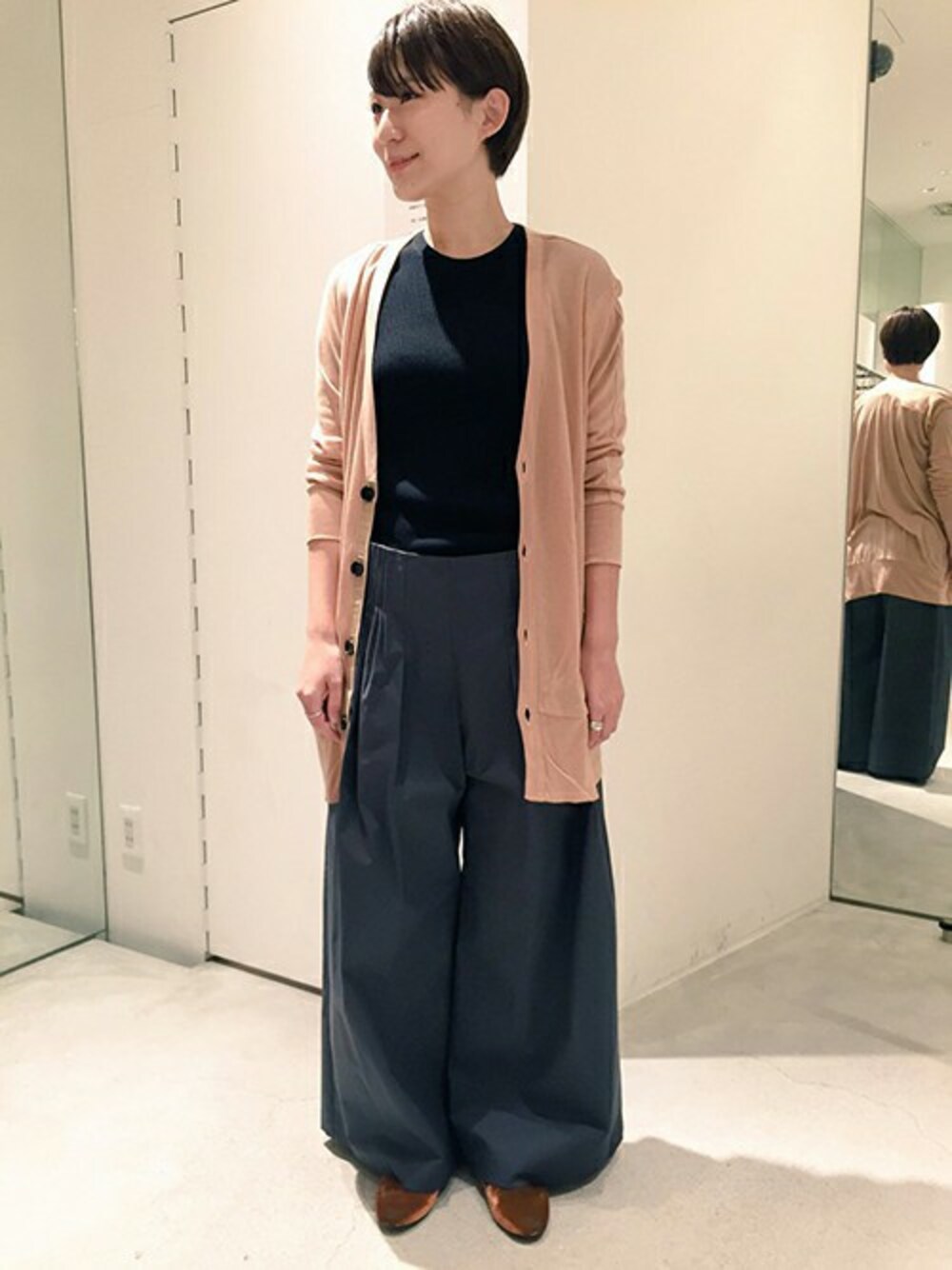 するっと滑らかな肌触りの SOのカーディガン。 光沢のある素材感で 女性らしく上品な印象に◎