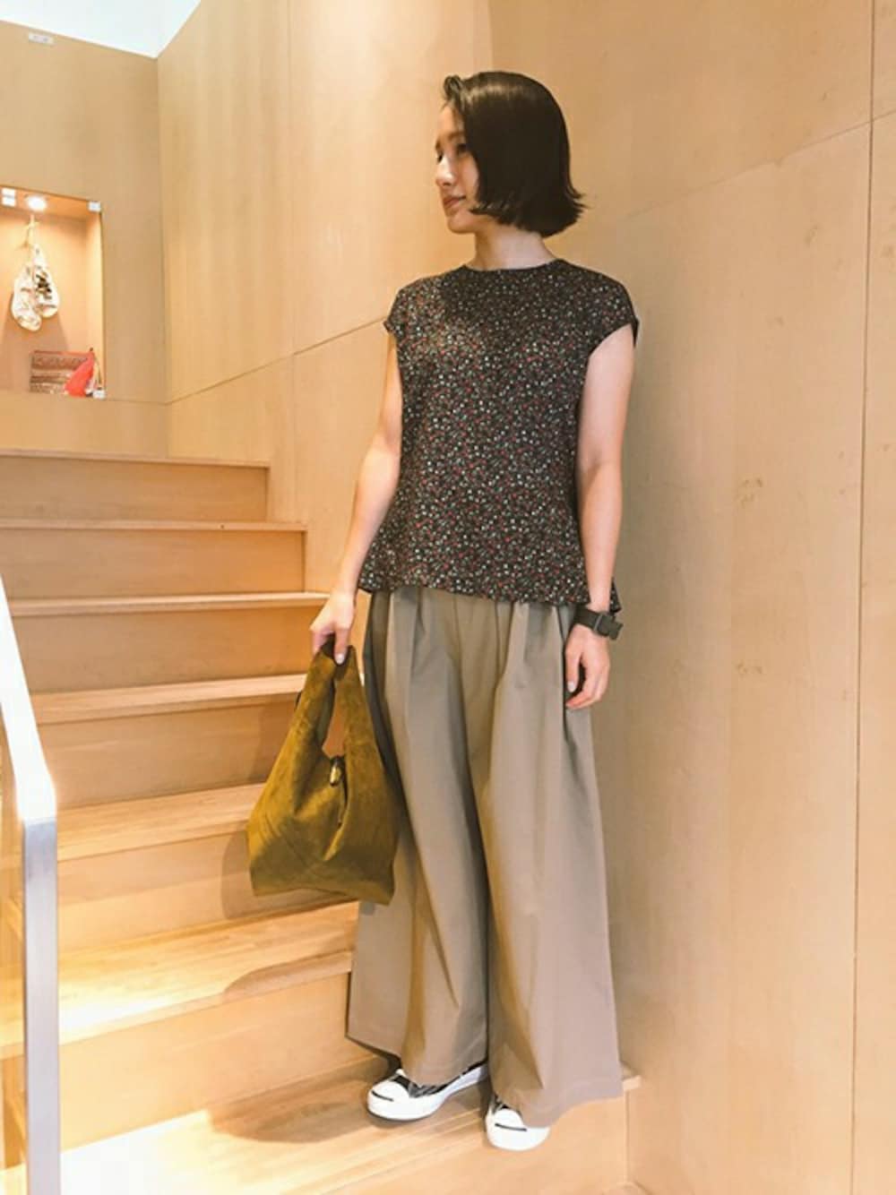note et silence.のシャツ/ブラウス「スモールフラワープリント プリーツフレアBL」を使ったコーディネート