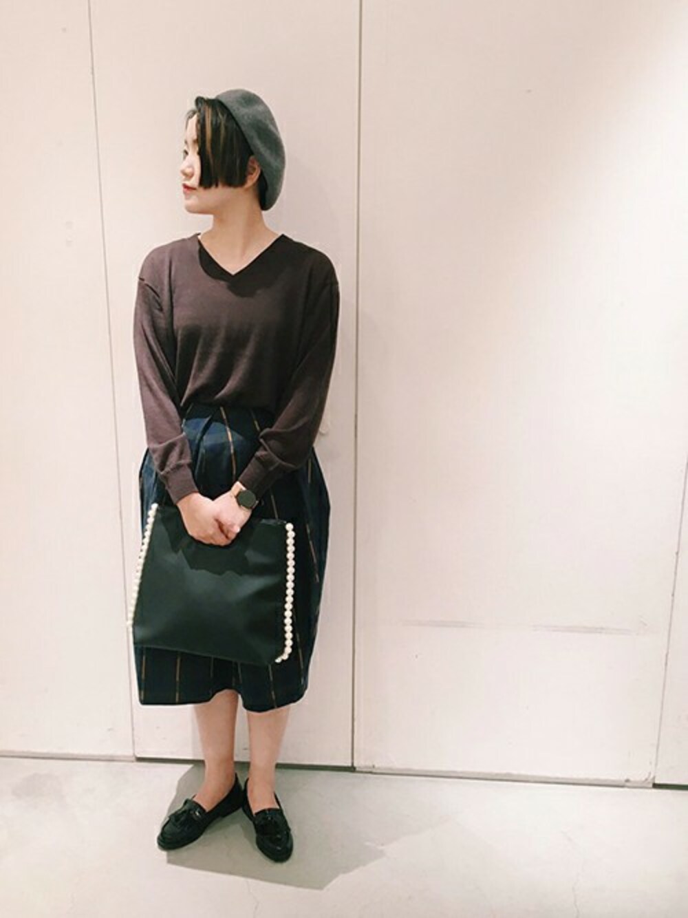 ハイゲージのニットをさらりと。 深すぎないVネックが程よい抜け感に。。