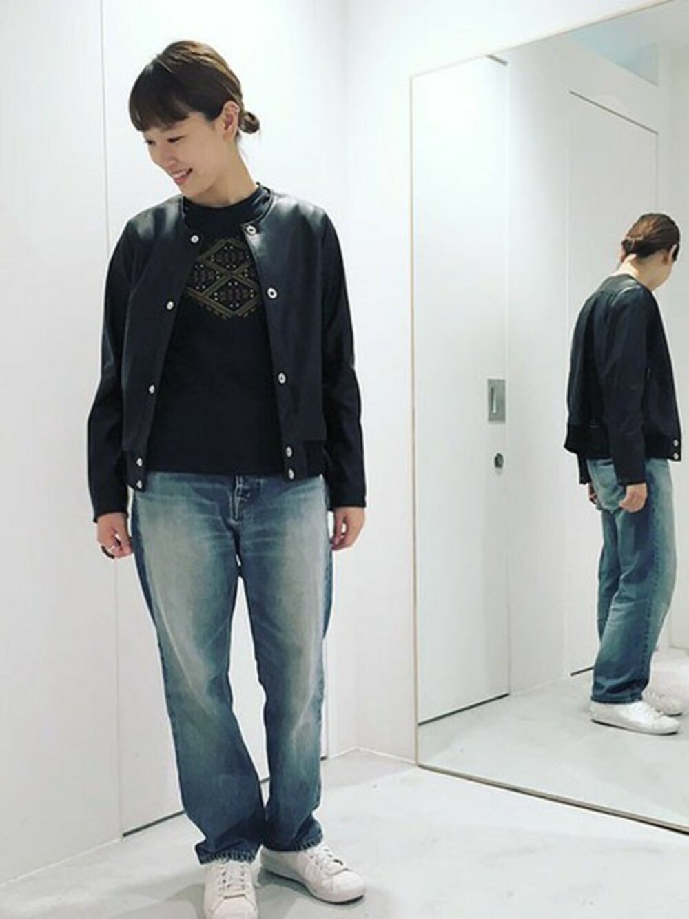 レザーのブルゾンは デニムとシンプルに 合わせるのがかっこいい...*