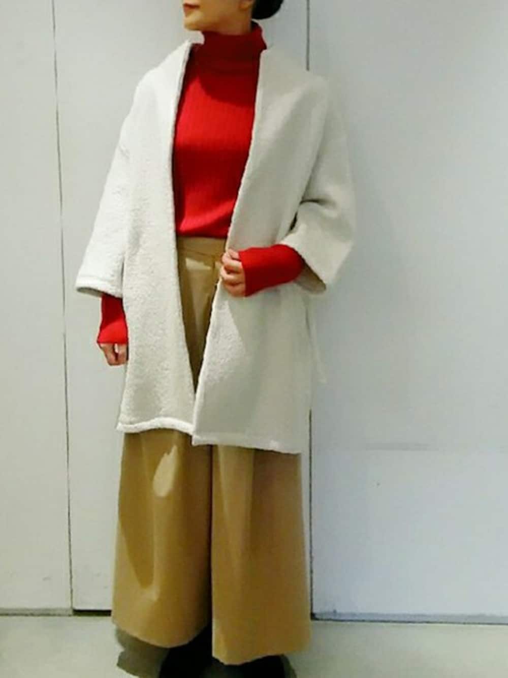 コットン×ウールの独特な手触りのノーカラーコート 前を閉めても開けても可愛い、本格的に寒くなる前に楽しみたい一枚です◎