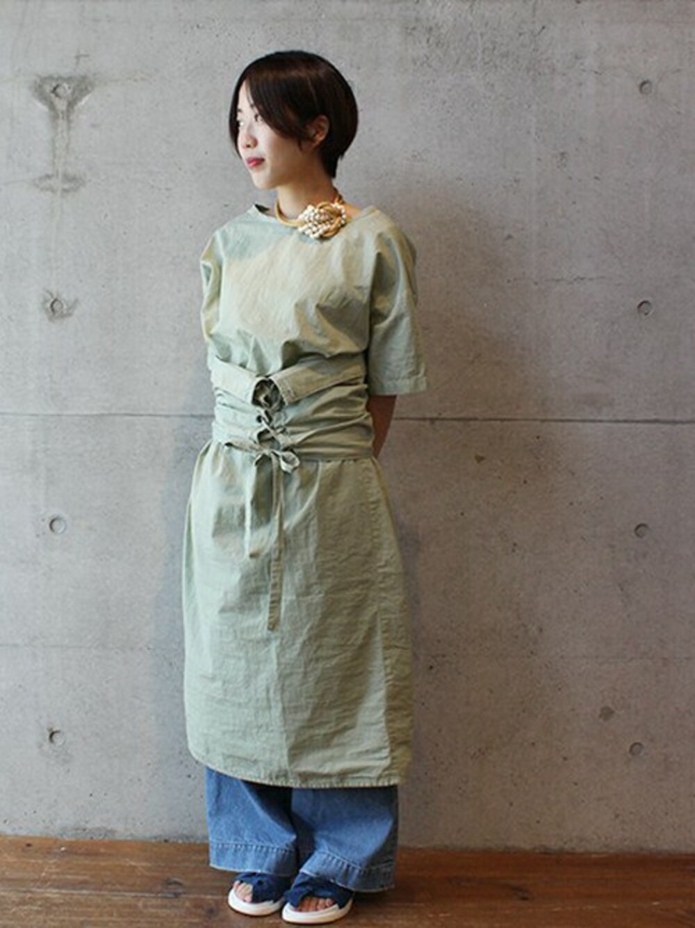 note et silence.のワンピース「120/2ピーチ起毛タイプライター コルセット結びOP」を使ったコーディネート