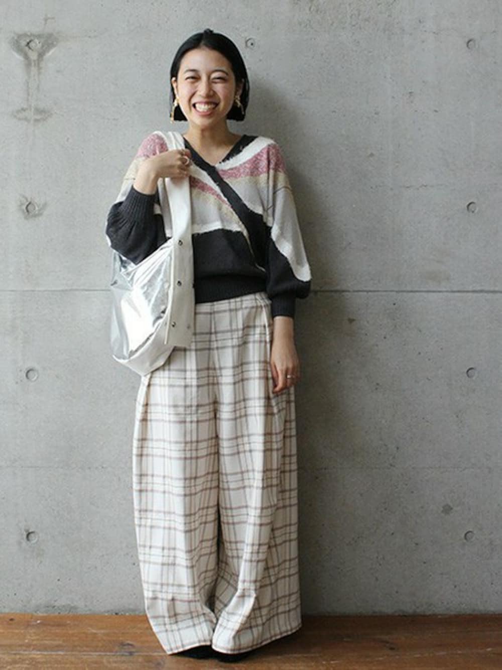 note et silence.のニット/セーター「インターシャVネック ショート丈PO」を使ったコーディネート