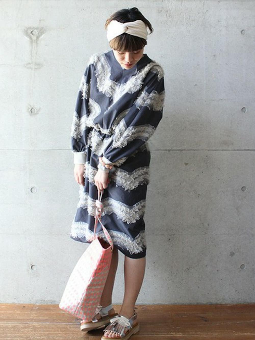 柄ワンピース     ×   フリンジ