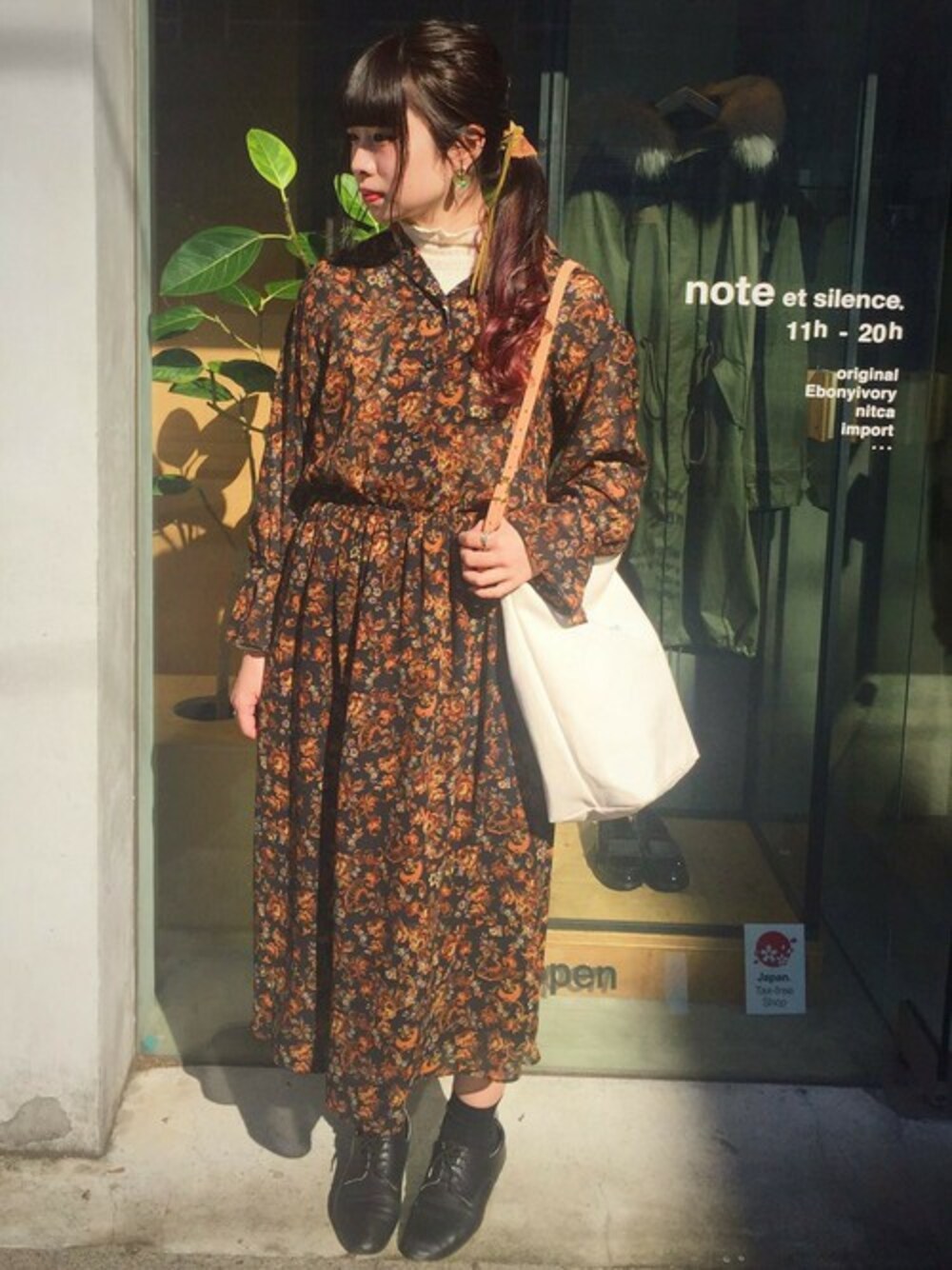note et silence.のワンピース「ビンテージフラワー ベルカフスO.P.」を使ったコーディネート