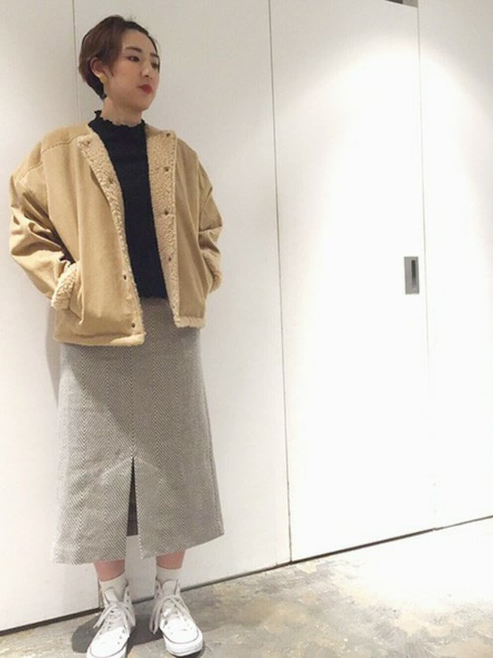note et silence.のブルゾン「コーデュロイ×ボア BZ」を使ったコーディネート