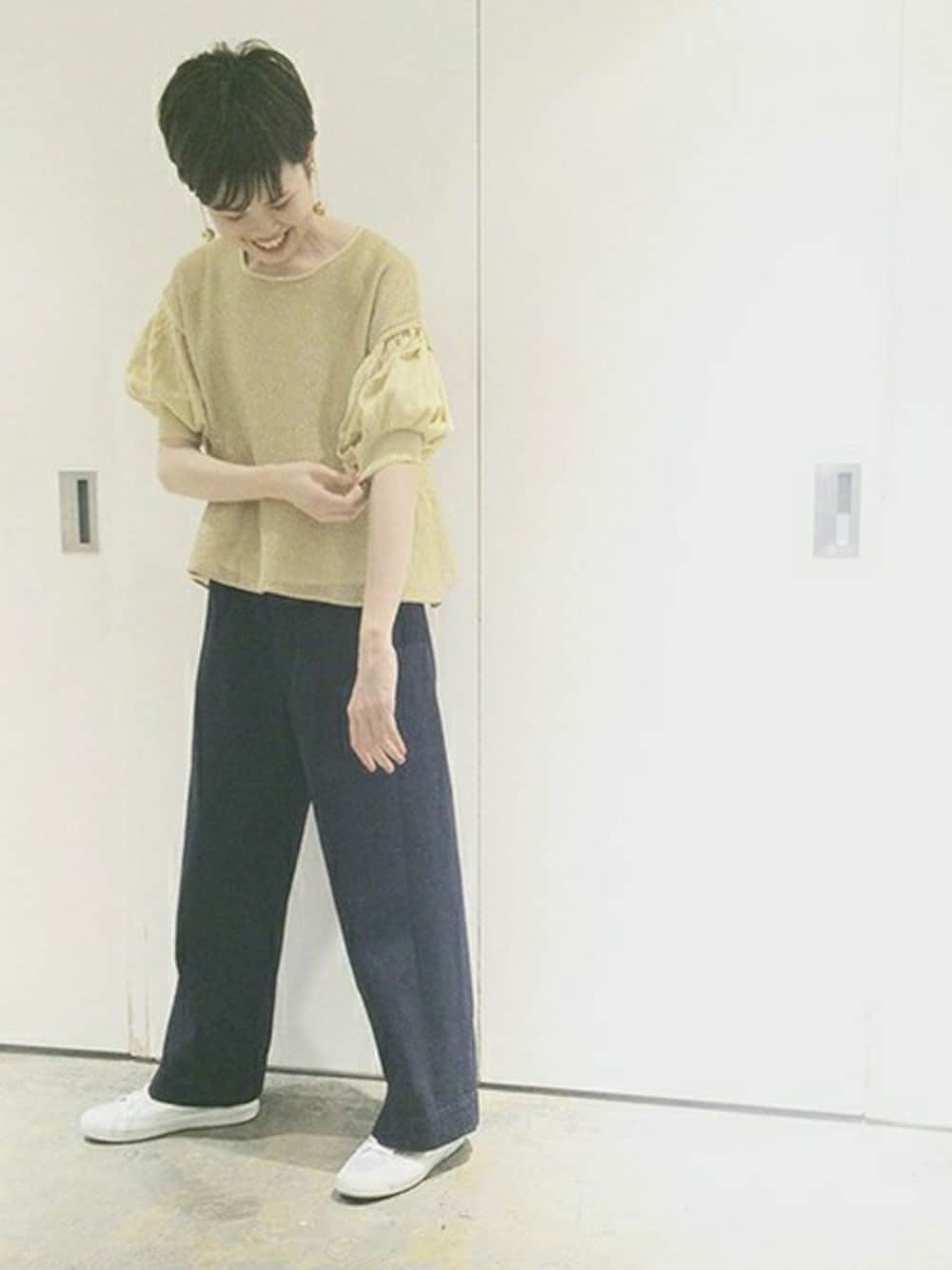 note et silence.のニット/セーター「HAGOROMO ラメ2重ボリューム袖PO」を使ったコーディネート