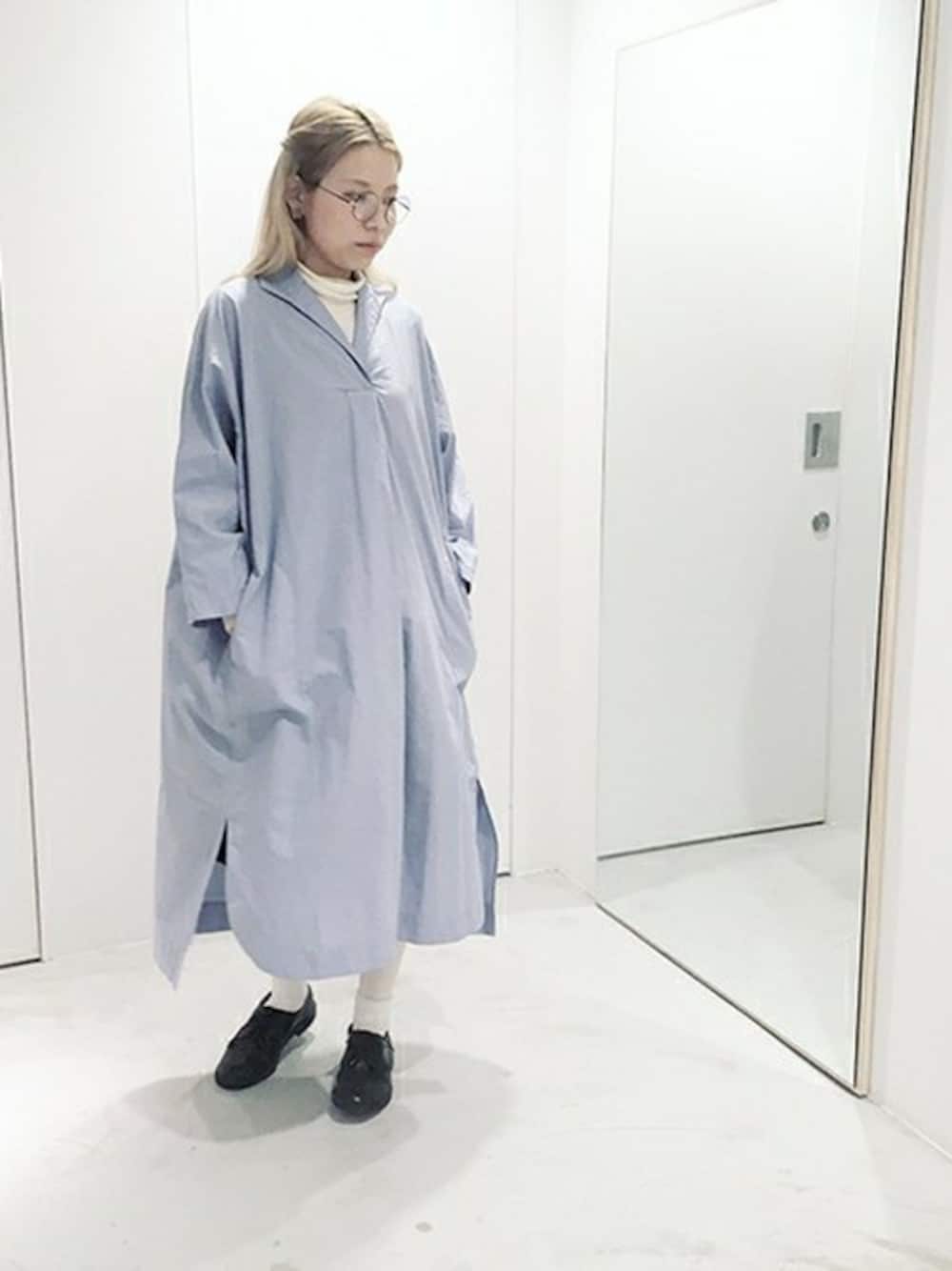 note et silence.のシャツワンピース「○ タイプライターストライプ 開襟シャツOP」を使ったコーディネート