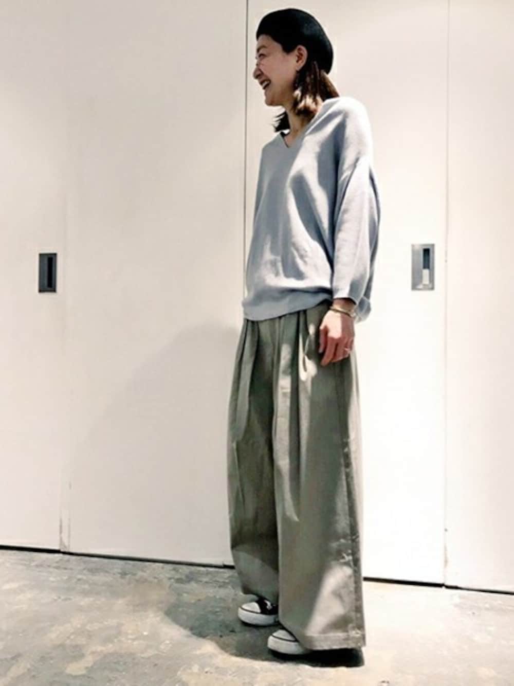 note et silence.のニット/セーター「C/レーヨンシルク スラッシュネックチュニック」を使ったコーディネート