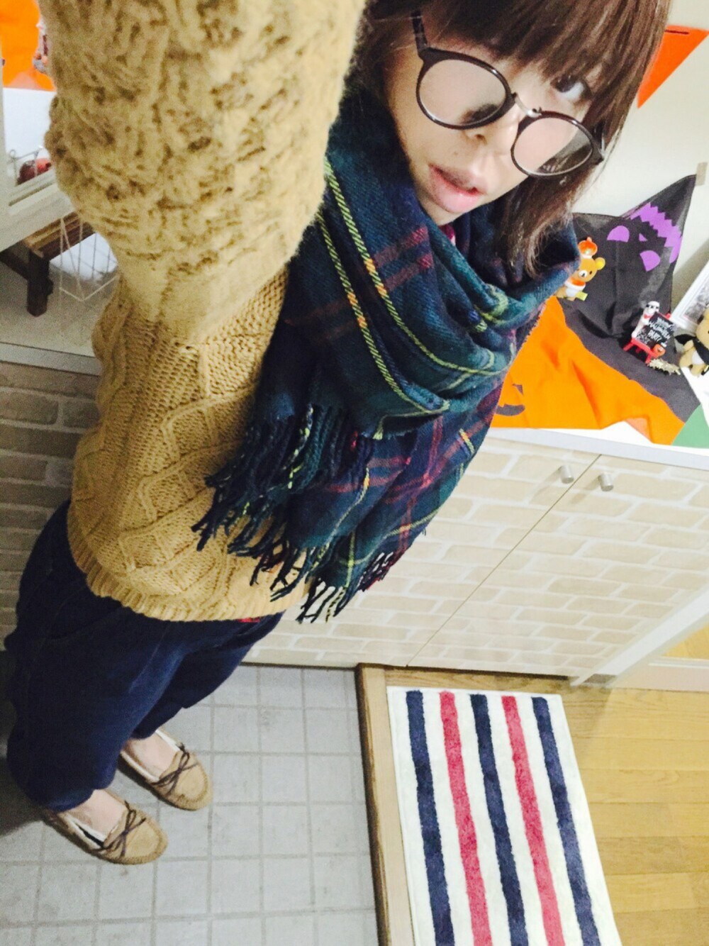 めっちゃ寒ーーーーい!!!! 本日2本目の投稿です! 寒過ぎて気候にタイムリーなコーデupりました!! 昼過ぎまでチェックシャツ1枚でいたのですが 悪寒と頭痛ですっかり体調崩壊wwwwww 慌ててニットを被りました(´;ω;`) 見えませんがゆるくポニーテールしてまつ。 ニットは御殿場へ行った時に購入。 昨年のモデルだったので¥1,500でした😳 くすみピンクのニットも欲しかったのですが 30手前の老け顔にはさすがにキツかった。。。 ところで何着ゆるニット持ってるんや???? あっ! 背景に写り込んでる玄関♡ 先月から地味にハロウィーン仕様でして🎃