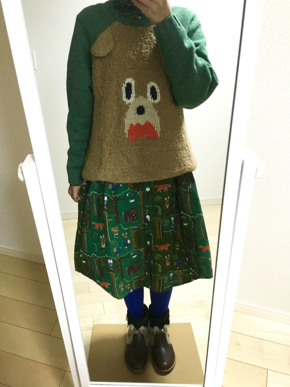 キコリノモリシャツを着るとき 全身緑に仕上げがちみたいです。笑