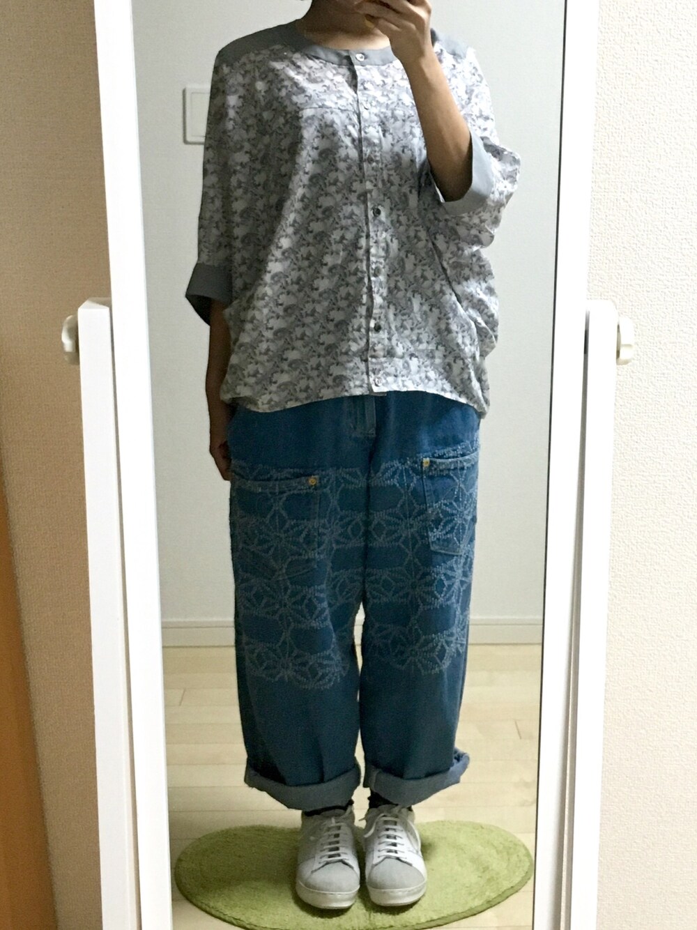 あまりの暑さにたまげた今日です。😱 週末やっと!💨うっすら衣替えしたので こんなに暑いのはさすがにもう遠慮したい… いつだかセールで買ったフラボアのブラウス、 写真ではわからないけど、鹿柄でかわいいです。💕 半袖狙ってたけどなかったので、たまには こういう形のもいいかなーと七分袖の方に。 季節の変わり目に良い感じです🎵