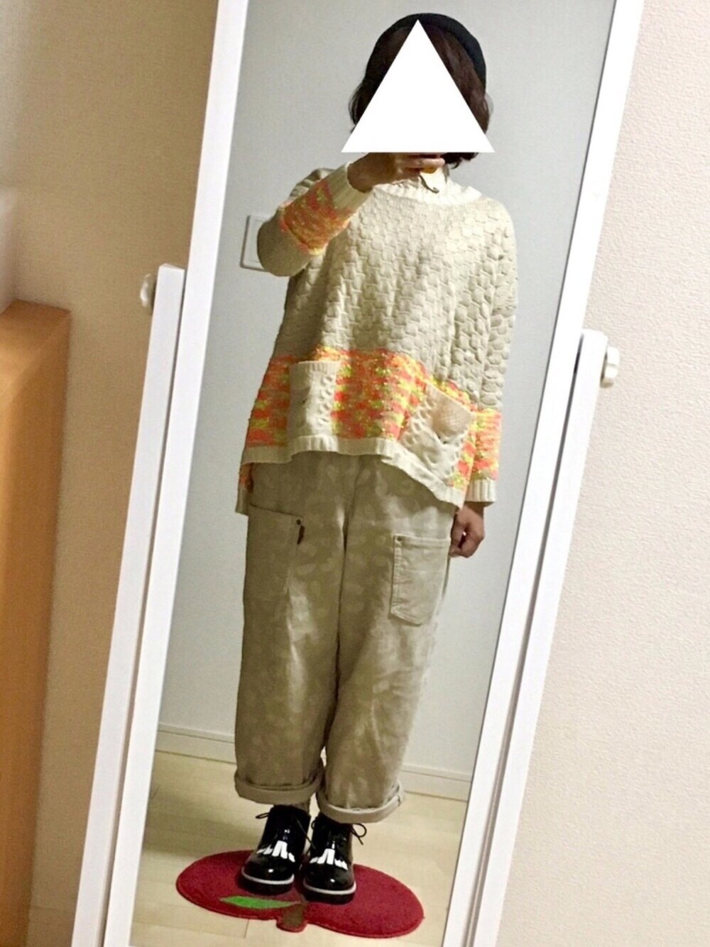 白系ニットに白系パンツで。 この冬はホワイト系ワントーンコーデが 地味に流行ってるっぽい自分内です。😆