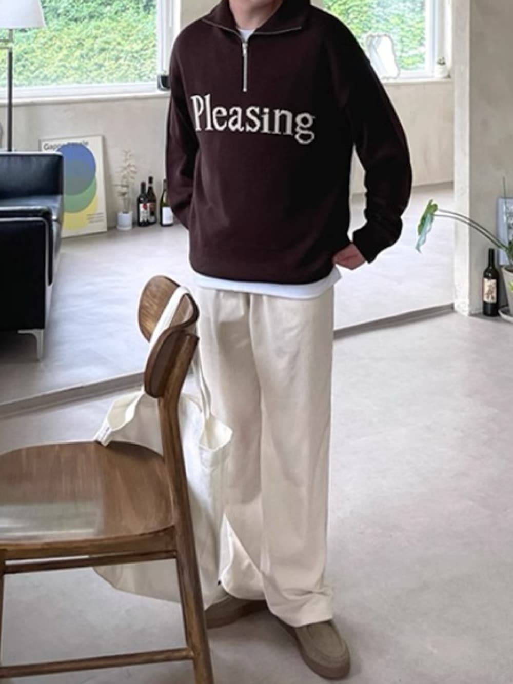 ロゴがアクセントになったブラウンのスウェットが、落ち着いた印象の中にも遊び心をプラスしています。 ゆったりとしたシルエットのホワイトパンツを合わせることで、全体的にリラックスした雰囲気に。 スウェットの下に白のインナーをレイヤードすることで、首元と裾に抜け感を出し、こなれた印象に仕上がっています。 Instagram @nowel_official 🦉