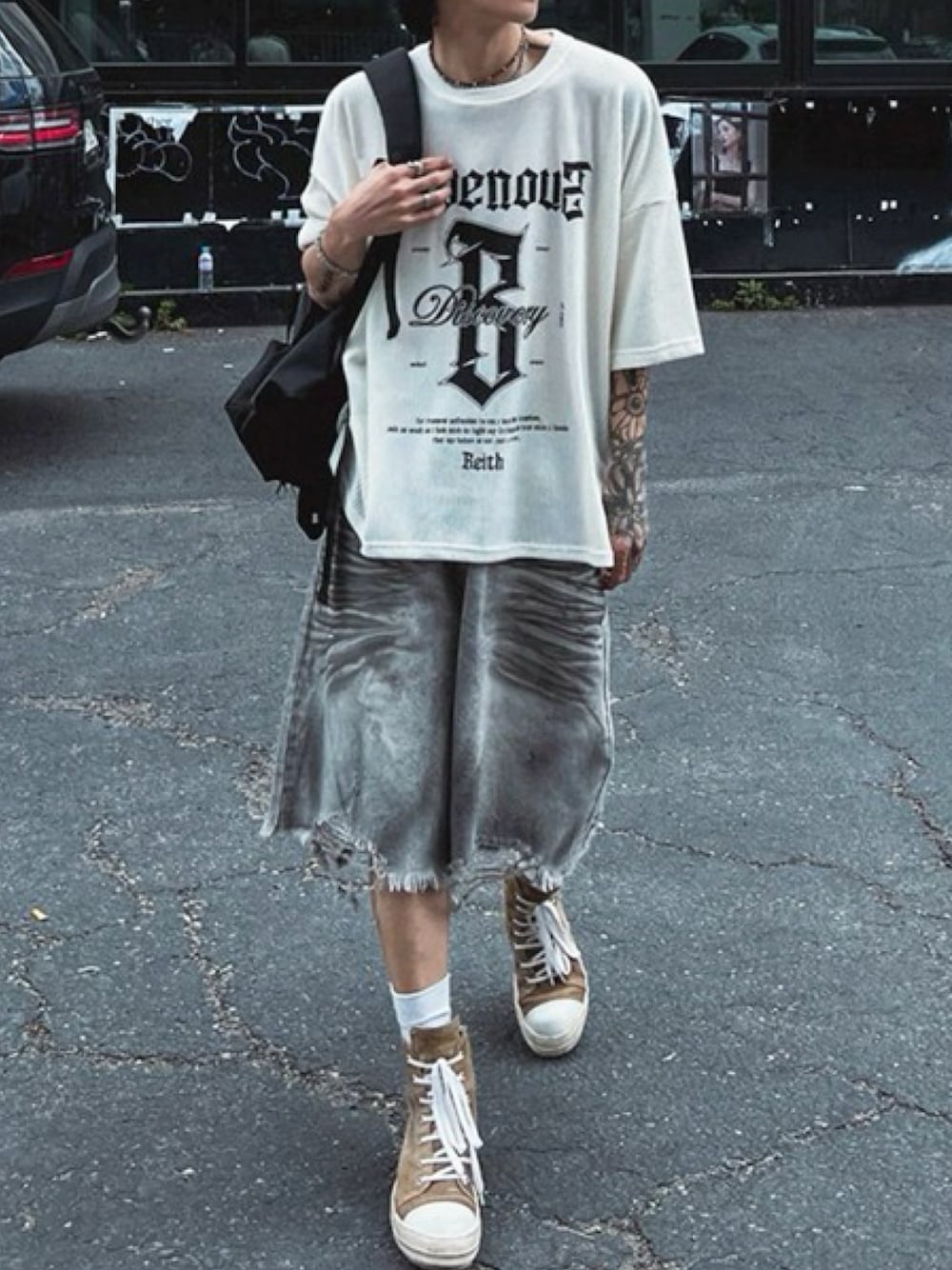 NOWLEのTシャツ/カットソー「【NOWLE】ゴシックロゴ プリント ルーズ リブ Tシャツ」を使ったコーディネート
