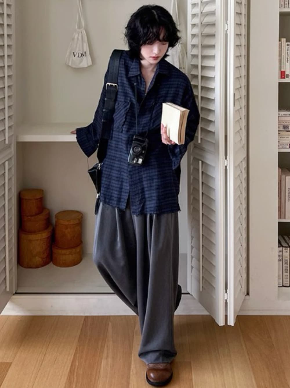 NOWLEのシャツ/ブラウス「【NOWLE】カットオフ ワッシャー ドレープ ダークチェックシャツ」を使ったコーディネート