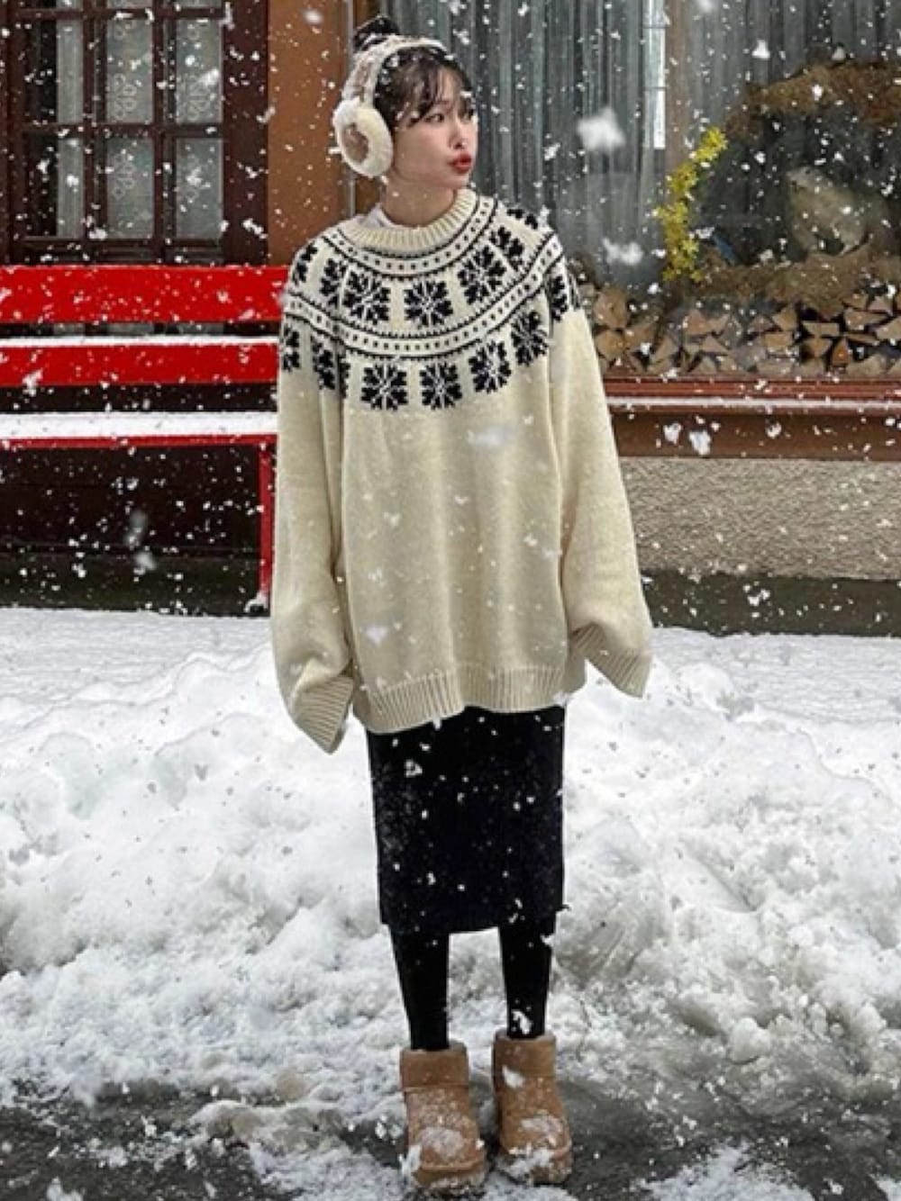 NOWLEのニット/セーター「【NOWLE】ウィンター レトロ ノルディック柄 プルオーバー ニット」を使ったコーディネート