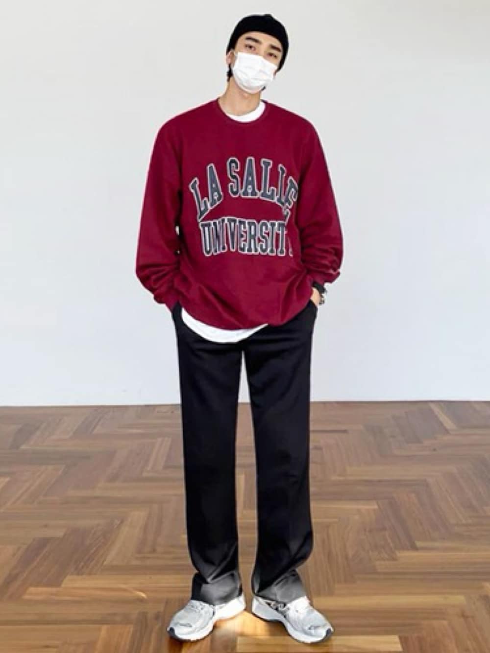 NOWLEのスウェット「【NOWLE】LA SALLE UNIVERSITY アーチロゴ カレッジプリント クルーネック スウェット」を使ったコーディネート