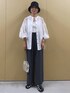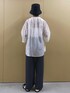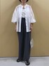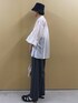 透け感が涼しげで夏の日除けや冷房対策にもおすすめなシアーシャツ。 体のラインをひろわないゆったりシルエットで肌触りもサラッとしてて着心地良いです。 ボトムスに合わせたとろみツイルパンツはとにかく素材の肌触りが良くウエストゴムで楽ちん♪ 38サイズでいい感じにゆとりもありサンダルでも長さちょうど良いです!
